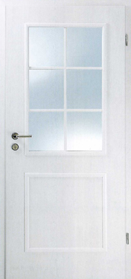M2 LA-Spr. 6F, Weißlack Zarge: Soft 60 Drücker: Tamina OF 65 Sprossenrahmen: 6-Felder Glas: Klarglas